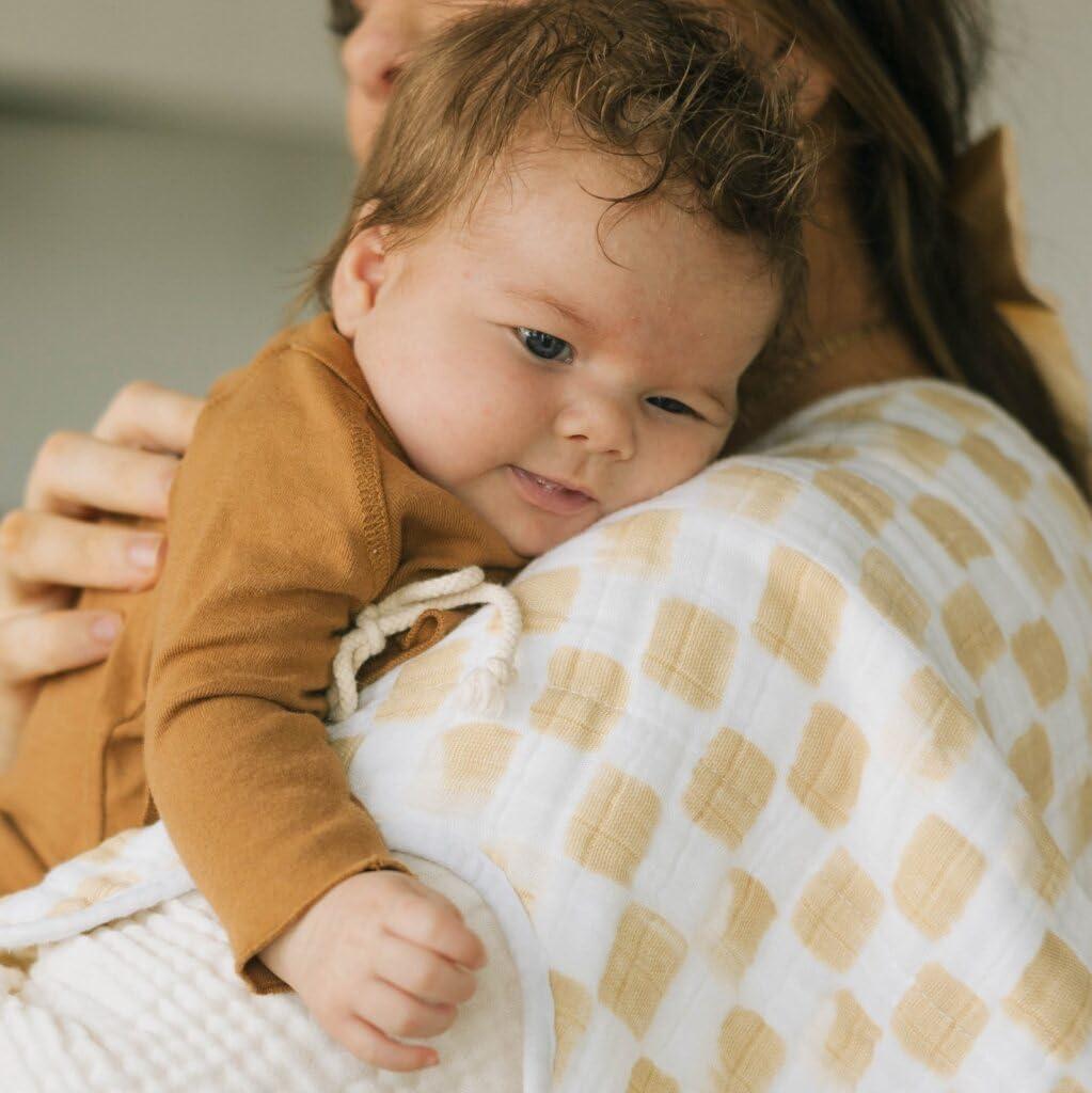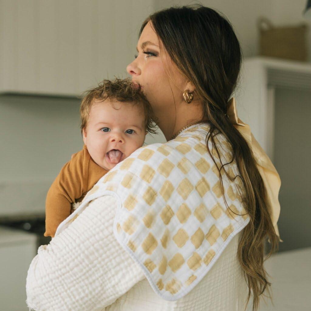 Our newest burp cloths are made from 100% GOTS certified organic cotton and are OEKO-TEX certified. With absorbent layers of organic cotton muslin and an innovative shape, our burp cloth keeps you clean and dry while baby's snuggled tight.