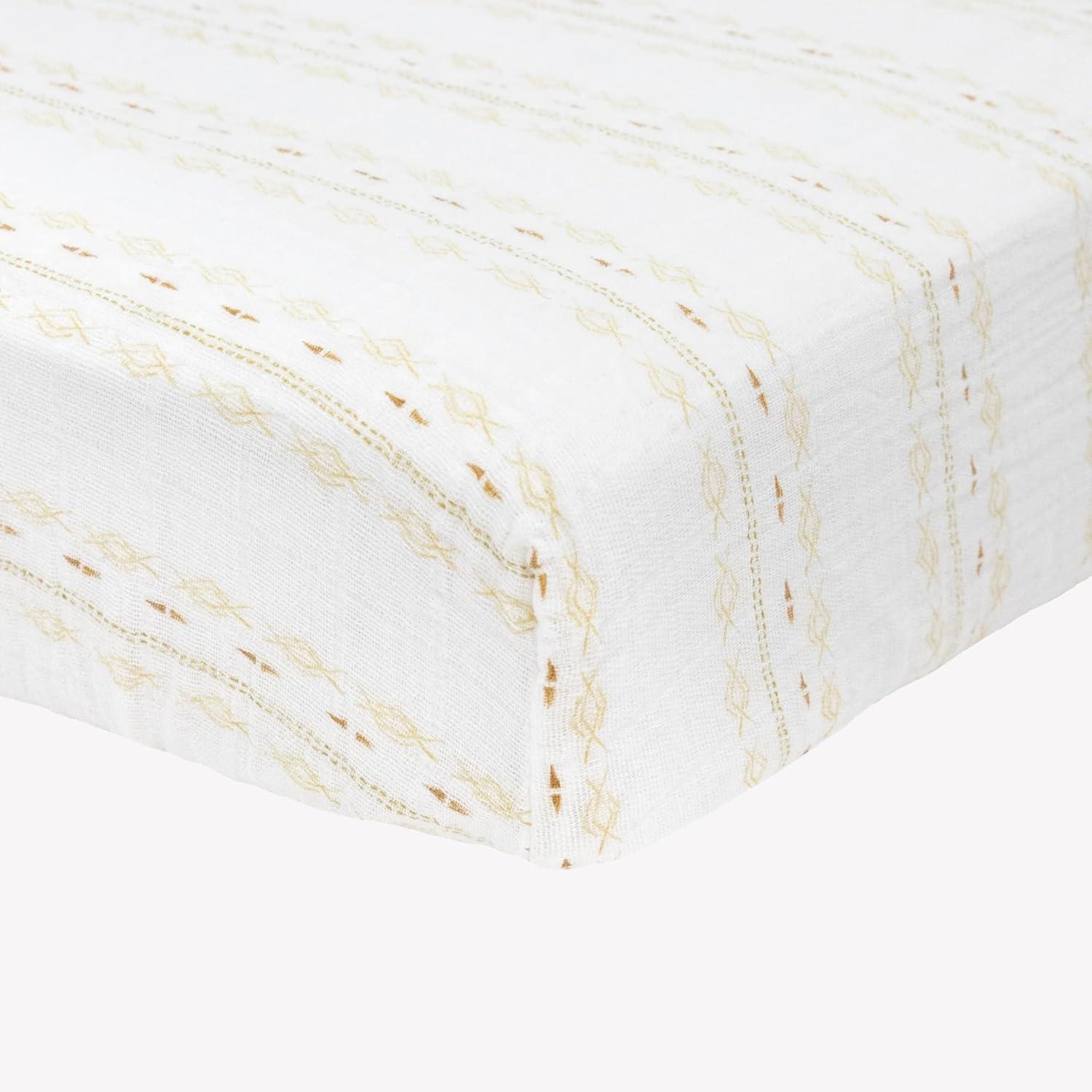 imageLittle Unicorn  Meadow Fitted Crib Sheet  Fitted Crib Sheet  100 Cotton Muslin  Super Soft  Sized for Standard Baby Crib ampamp Toddler Mattress  Machine Washable  52 x 28 x 9Gold Diamondstripe