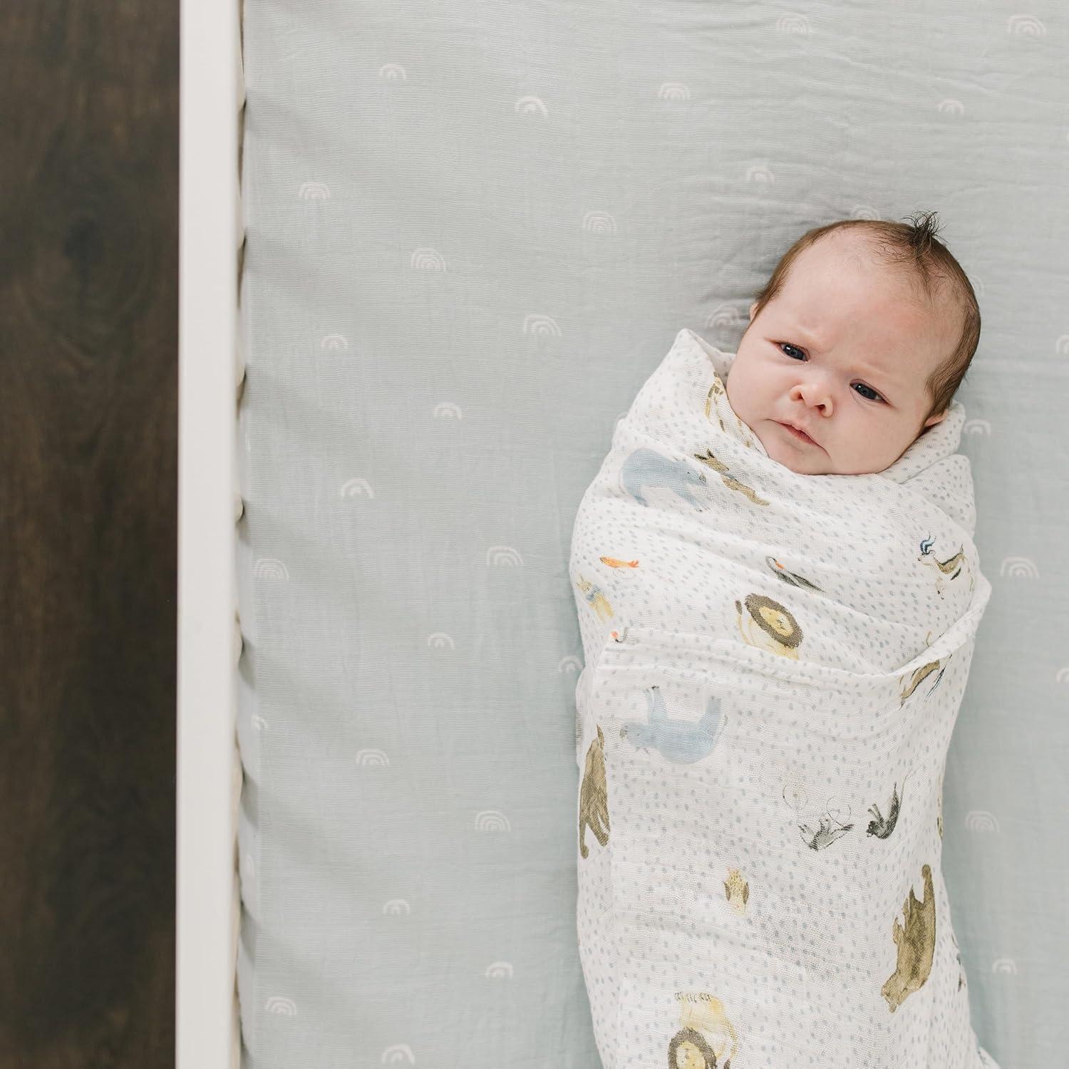 imageLittle Unicorn  Meadow Fitted Crib Sheet  Fitted Crib Sheet  100 Cotton Muslin  Super Soft  Sized for Standard Baby Crib ampamp Toddler Mattress  Machine Washable  52 x 28 x 9Blue Rainbow