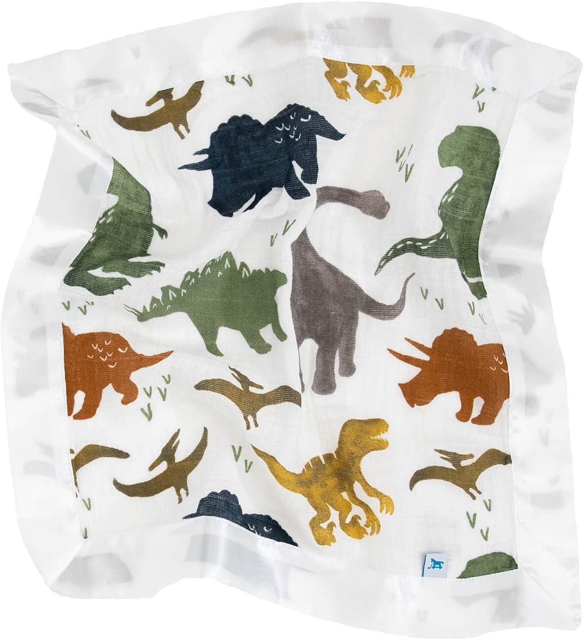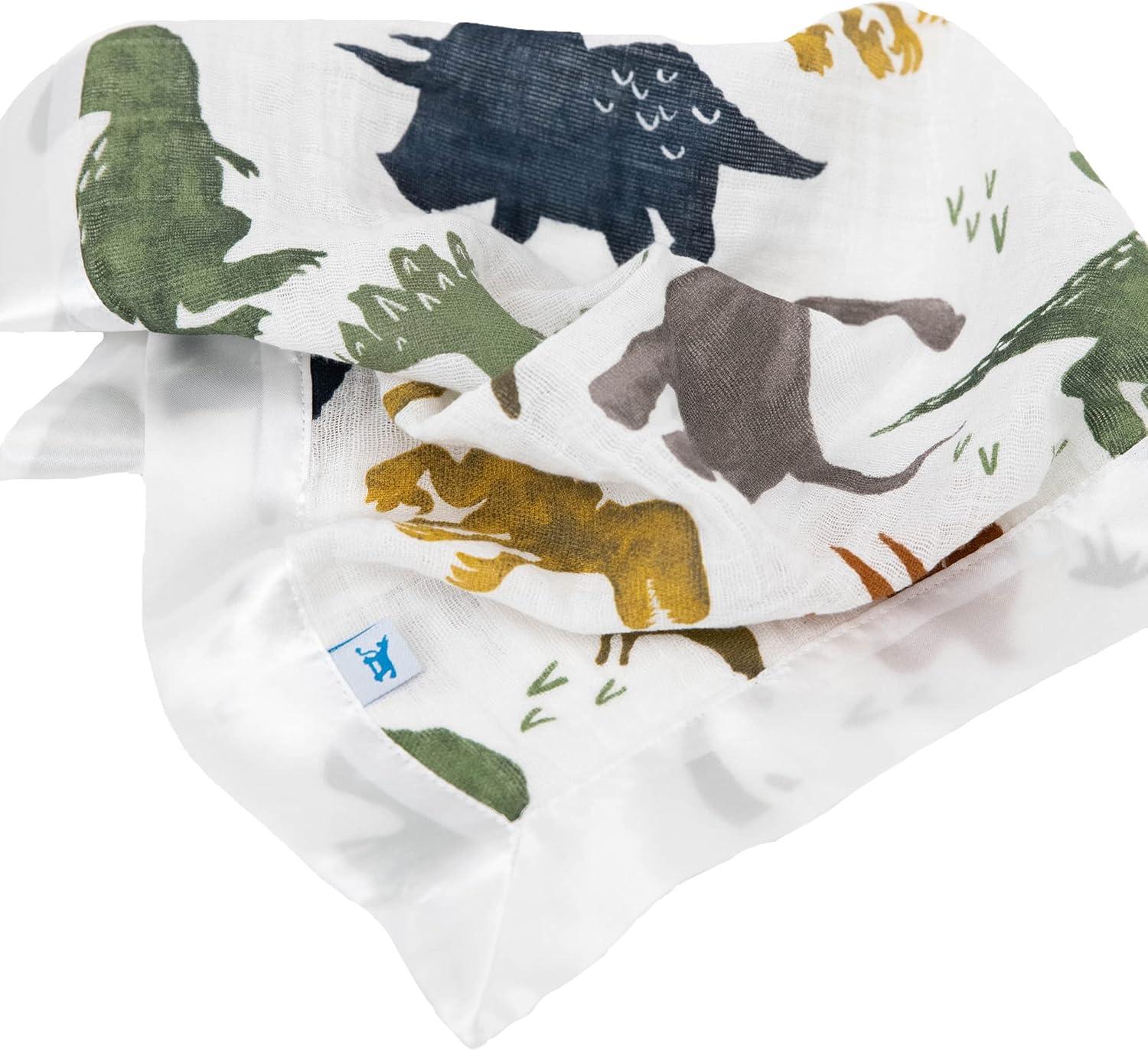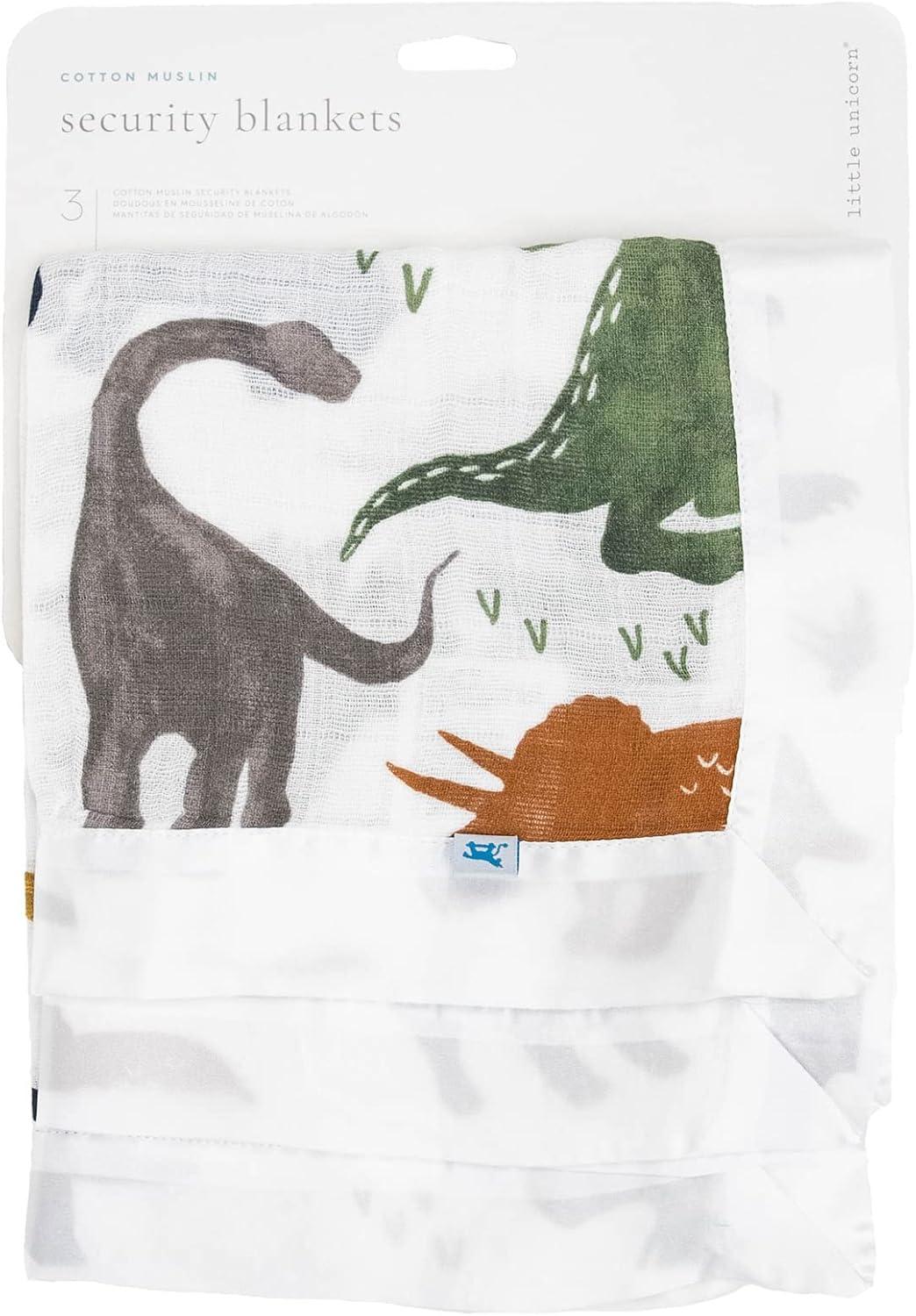 Little Unicorn Security Blankets 3 Pack | 100% Cotton Muslin with Satin Border| Super Soft and Breathable | Baby, Infant, Toddler | Lovey for Boys and Girls | Tropical Leaf(Dino Friends)